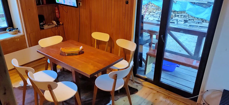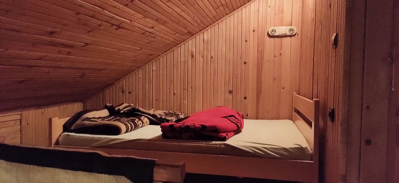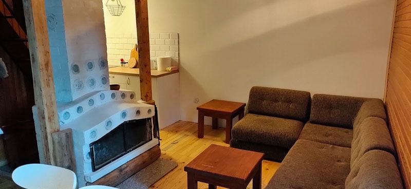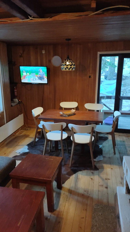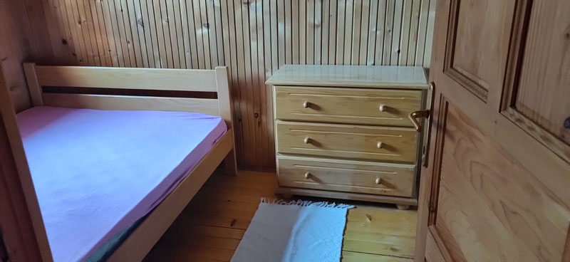Drugi dio je za 4-6 osoba i sastoji se od prostranog dnevnog boravka sa kaminom i kuhinjom, kupatila, 2 sobe (sa po 2 ležaja) i galerije sa francuskim ležajem. Grijanje je na TA peć, električne radijatore i na drva (kamin). Obezbjeđen je neograničen WiFi i Total TV. |