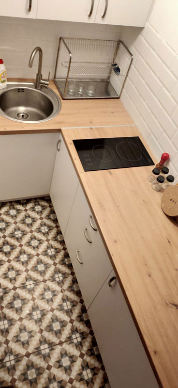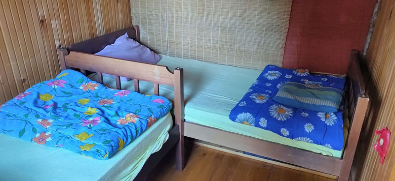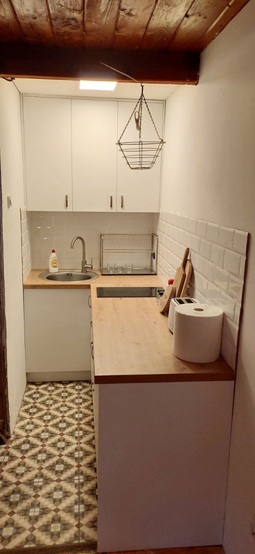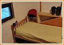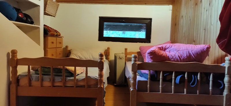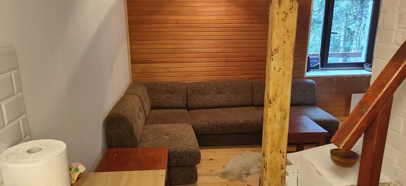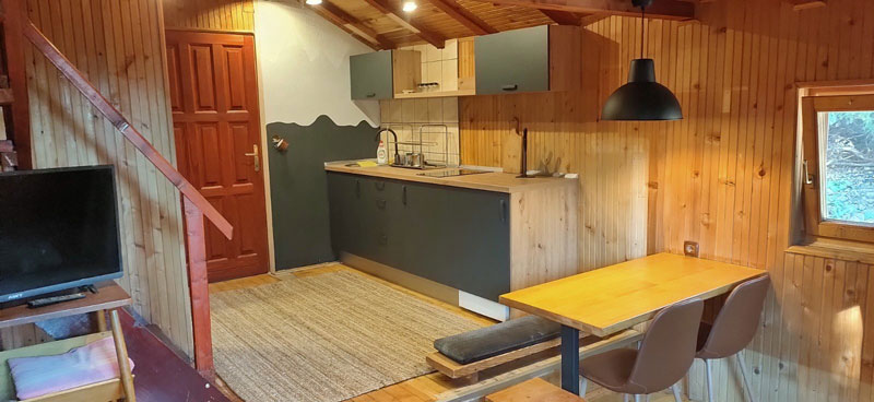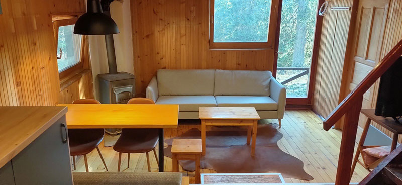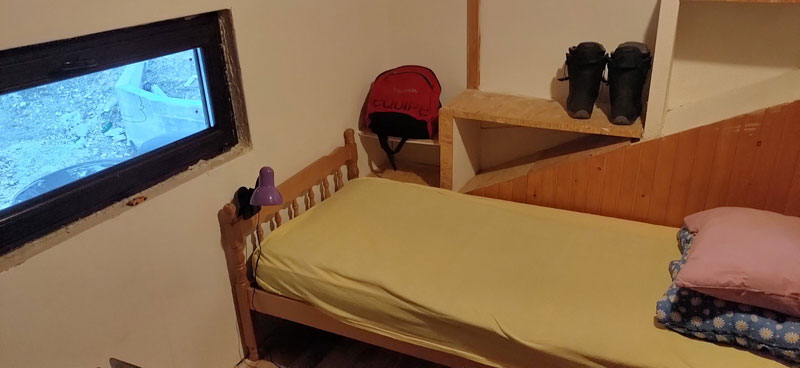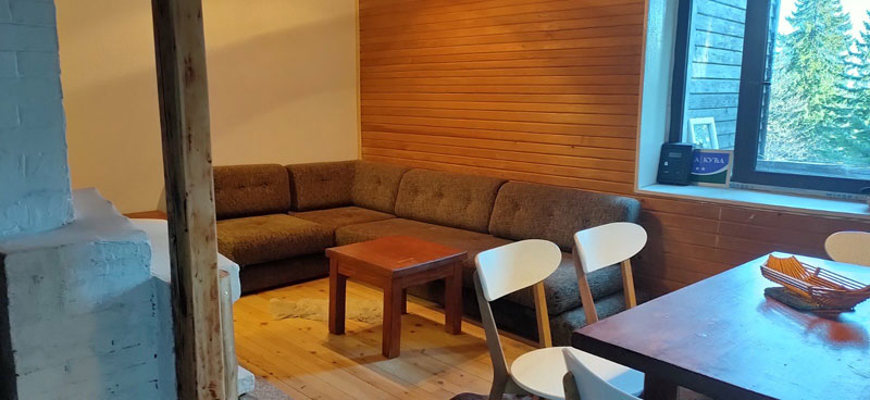 U prvom dijelu moguć je boravak 6-7 osoba. Sastoji se od prostranog dnevnog boravka sa kaminom i kuhinjom, kupatila, 2 sobe (sa 4 i 2 ležaja) i skijašnice za odlaganje skija, hrane i pića. Grijanje je na TA peć, električne radijatore i na drva (kamin). Obezbjeđen je neograničen WiFi i Total TV.