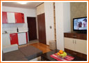 2. APARTMAN se sastoji od dnevnog boravka sa kuhinjom i ležaja na razvlačenje, sobe sa francuskim ležajem i kupatila. Kompletan namještaj je nov, grijanje je na struju, obezbjeđen je bežični internet i total TV. Kapacitet 4 osobe. |